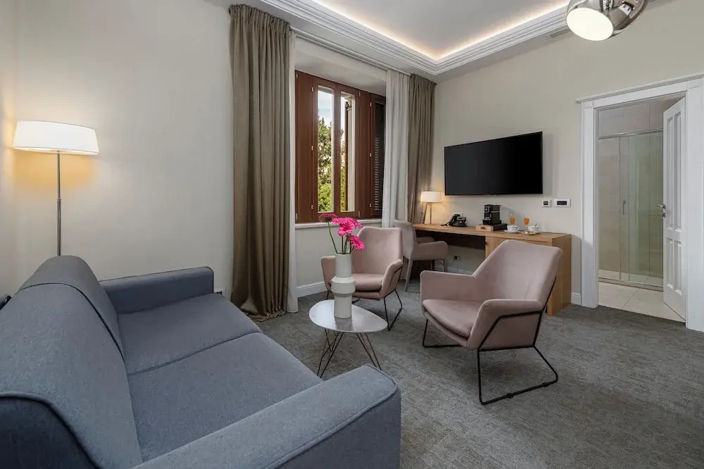 Красивый номер, отличное расположение и супер прием от Аниты. Единственная критика - завтрак. Для номера за 200 €/сутки мизерный ваучер (один кофе, один маленький ОЖ и одно блюдо) в соседнем ресторане не соответствует уровню - и, видимо, это должно было быть улучшение по сравнению с тем, что они предлагали в предыдущем году. Почему бы не дать гостям возможность позавтракать в своем соседнем отеле?