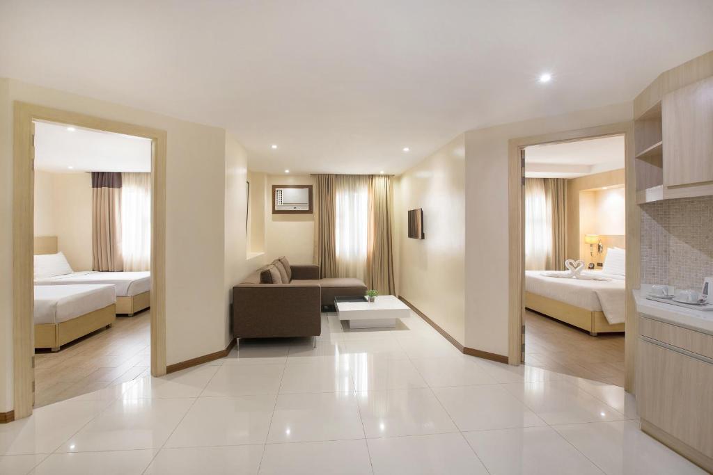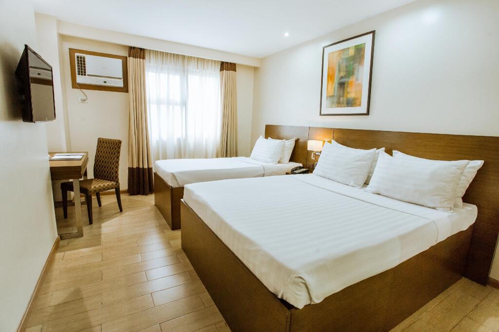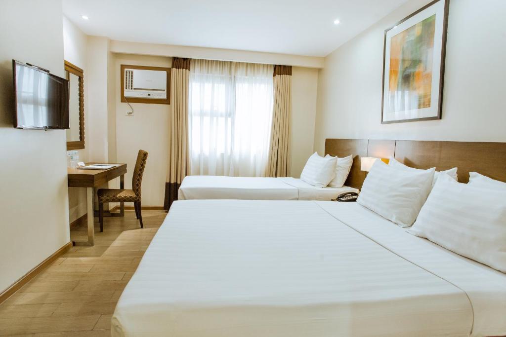 Добро: Отель был недавно обновлен и очень старается быть лучше, чем его 3-звездочный рейтинг. Персонал очень вежливый и услужливый. Соблазнительные вещи, кофе, маленький холодильник и сейф были всем желанным гостем. Расположение идеально подходит для доступа в центр Ayala, и отель предлагает лучшее соотношение цены и качества для любого в этом районе. Плохо: Номера они предлагают для бронирования. com и подобные не самые удобные, с застрявшей в нем кроватью с двумя односпальными кроватями и кроватью размера "queen-size" и крошечной комнатой для комфорта Кондиционер не может быть отрегулирован в нашей назначенной комнате. Холодильник в комнате замены не работал, чайник не выключался, а туалет был забит. Ugg! Сайты бронирования должны предупреждать их, потому что они дают вам плохую репутацию! Гадкий: Это был второй раз, когда я забронировал этот отель через бронирование. com и были разочарованы состоянием ремонта комнат. Унизительно назначать номера с уже встроенными проблемами по прибытии из-за дискомфорта и неудобств утомленного путешественника.