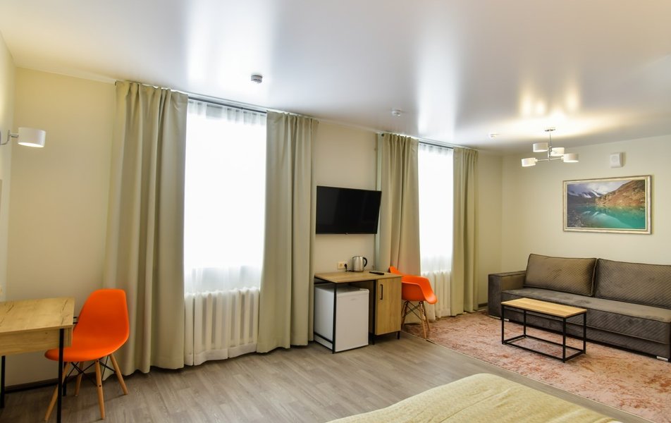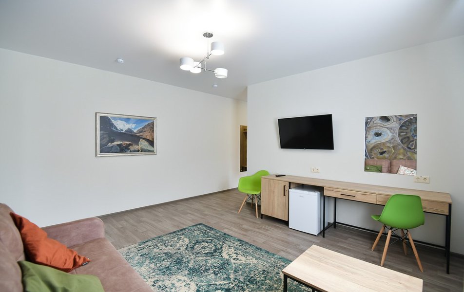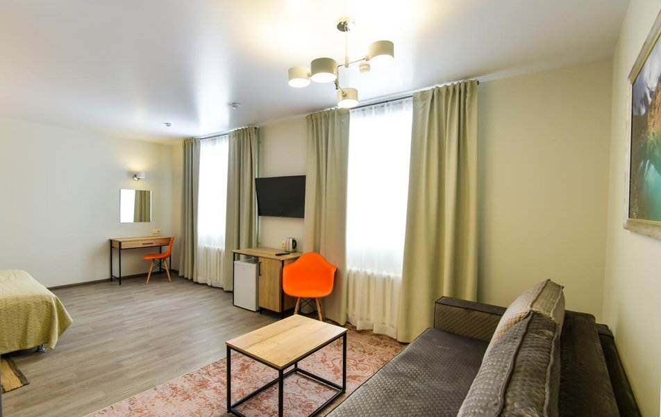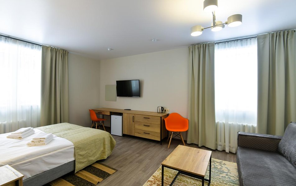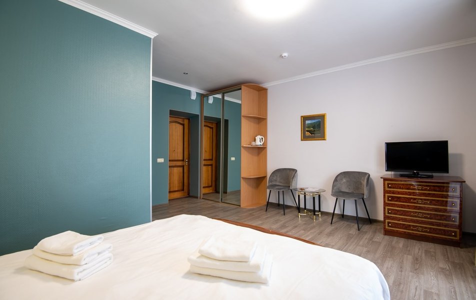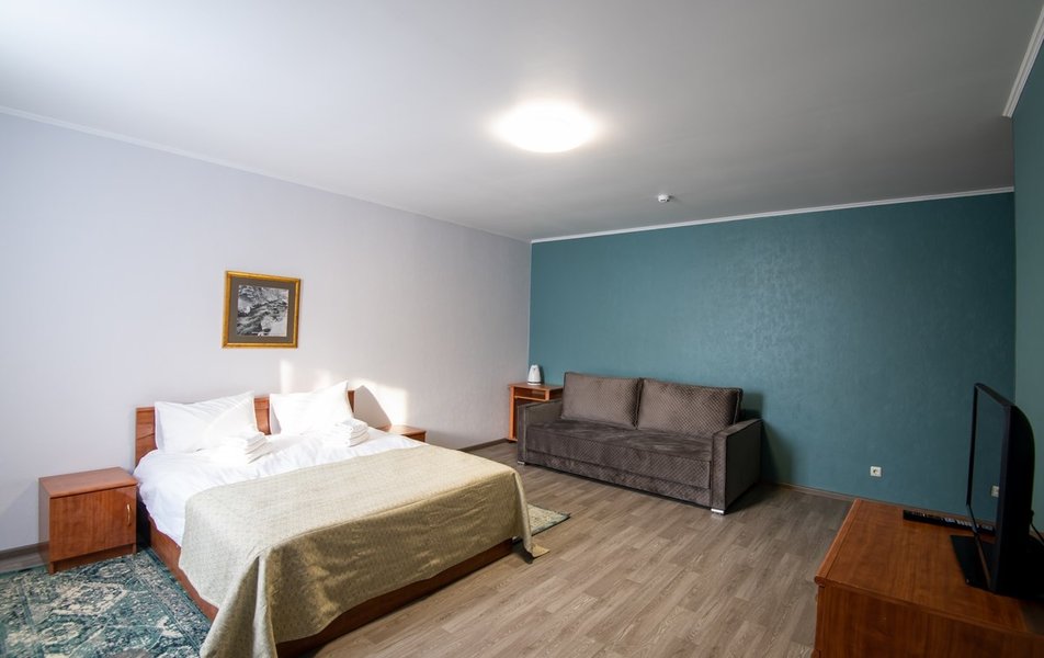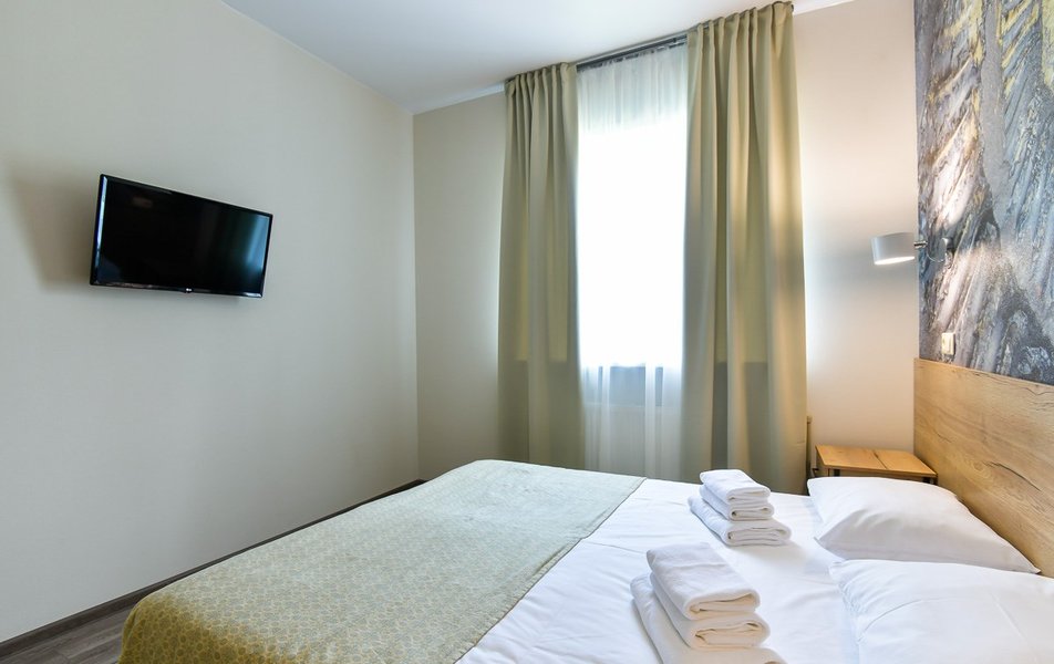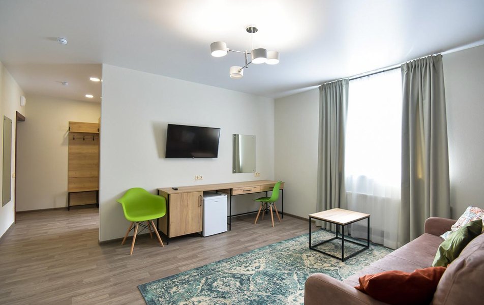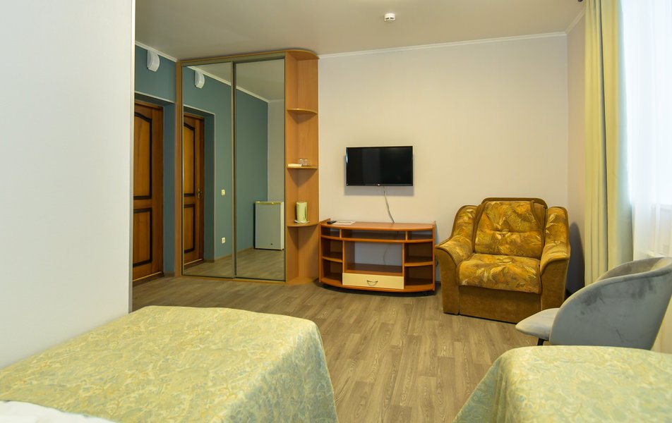 Семейный Плюс 2-местный (корпус 5) Количество комнат: 3-комнатный Тип номера: Семейный Дополнительное место: раскладной диван Кол-во доп. мест: 4 Кол-во основных мест: 1 Корпус: №5 Площадь (кв. м): 55 Мебель: диван раскладной, кровати односпальные: 2 шт., кровати односпальные /одна двуспальная кровать: 2 шт./2 шт., прикроватные тумбочки, стол, столик журнальный, стулья, шкаф Оборудование: телевизор, холодильник, чайный набор посуды, электрочайник Санузел: с душевой кабиной, туалетные принадлежности, фен Сервис: Wi-Fi бесплатно, смена полотенец, смена постельного белья, уборка номера