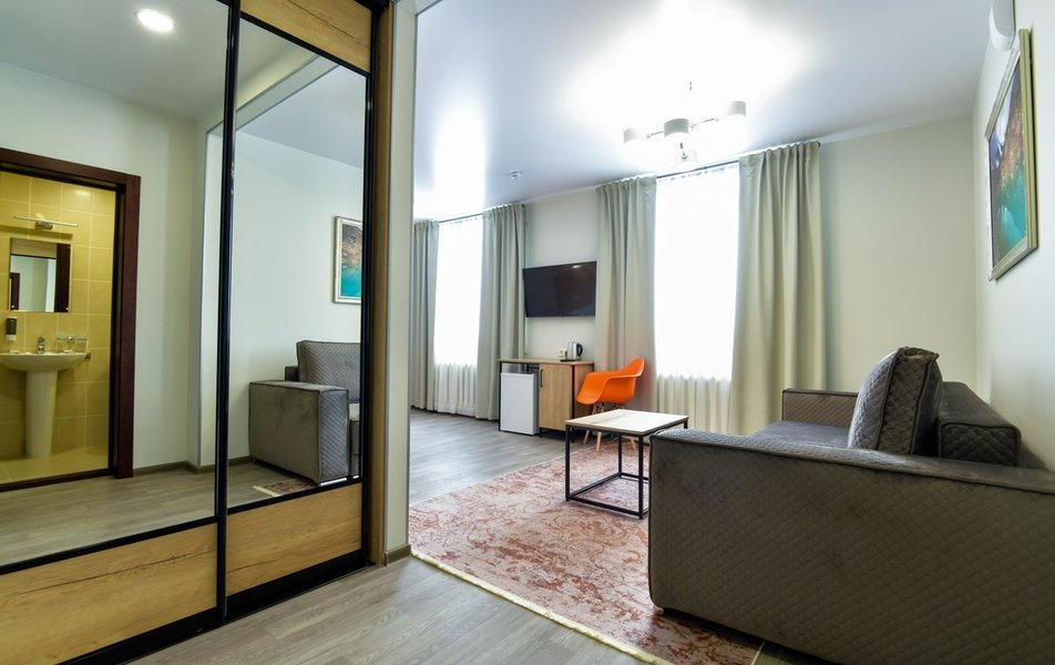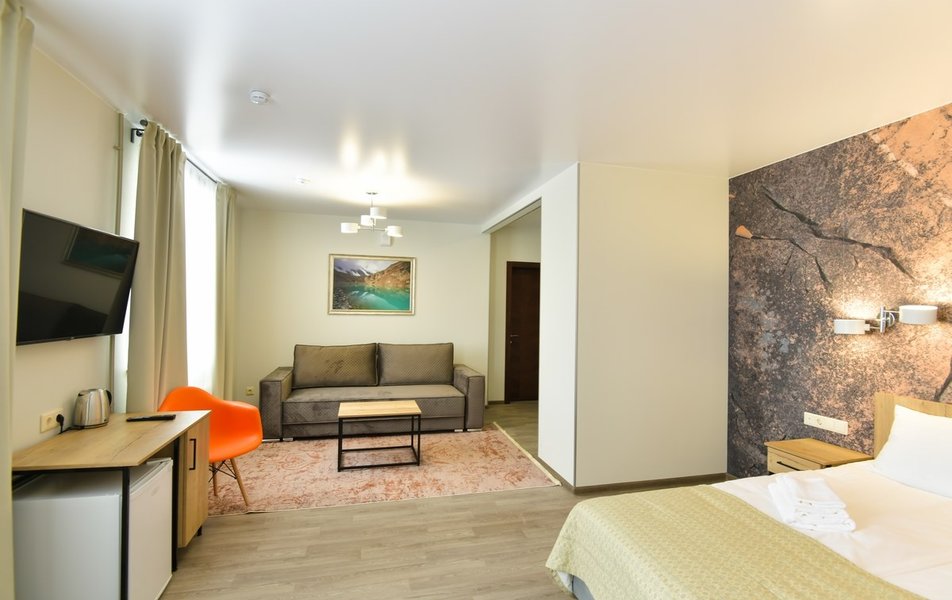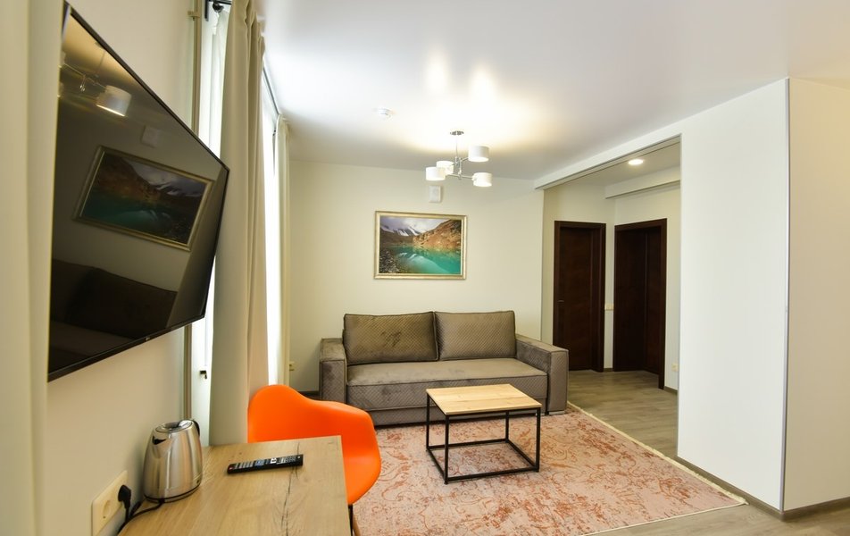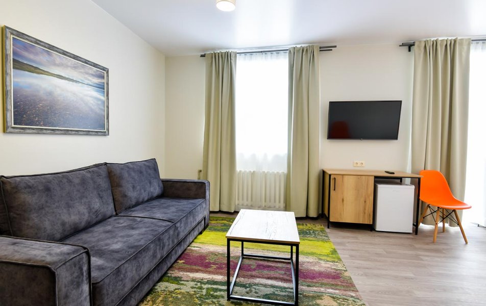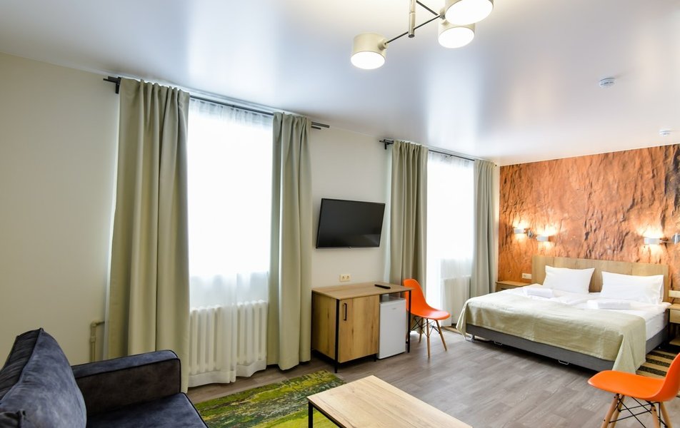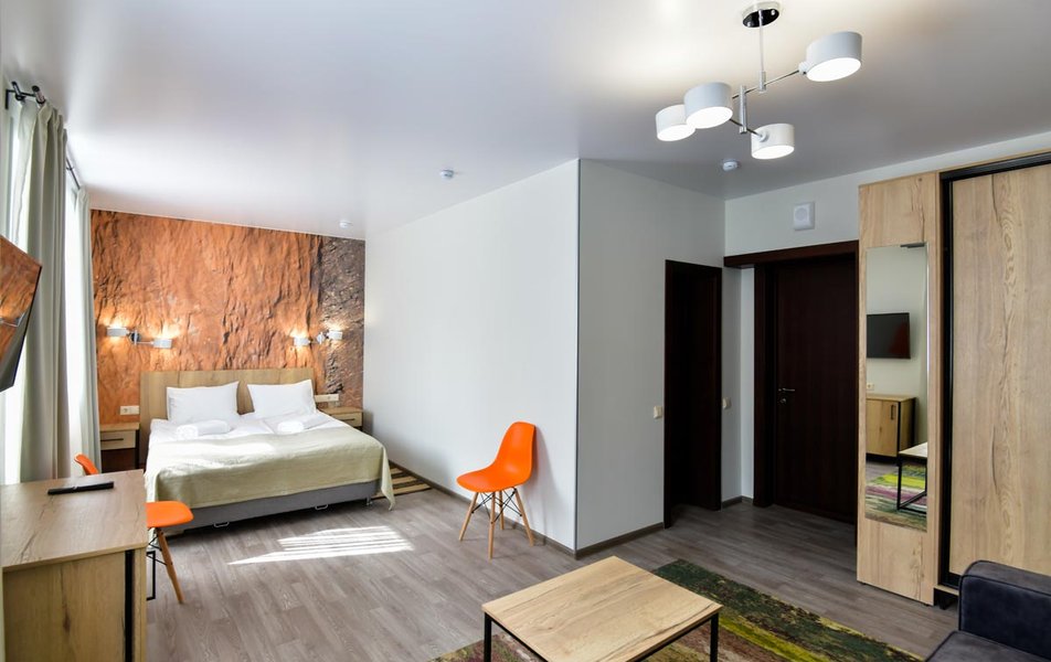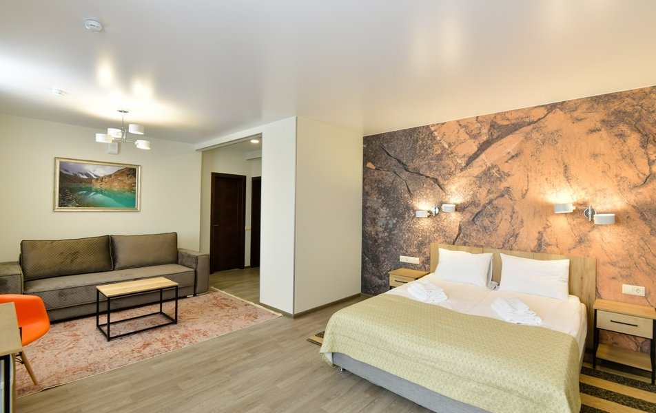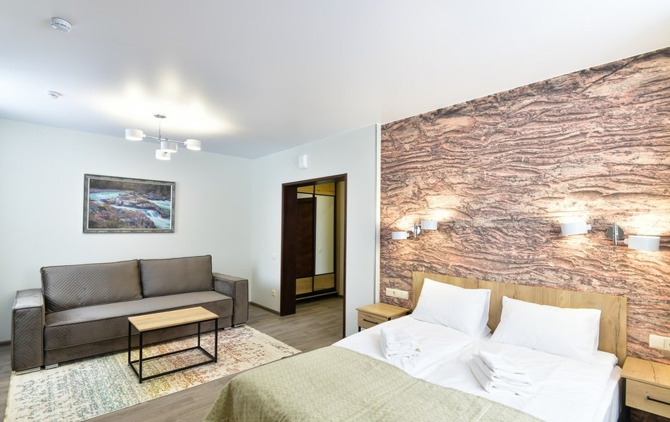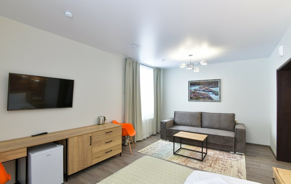 Семейный Плюс 2-местный (корпус 5) Количество комнат: 3-комнатный Тип номера: Семейный Дополнительное место: раскладной диван Кол-во доп. мест: 4 Кол-во основных мест: 1 Корпус: №5 Площадь (кв. м): 55 Мебель: диван раскладной, кровати односпальные: 2 шт., кровати односпальные /одна двуспальная кровать: 2 шт./2 шт., прикроватные тумбочки, стол, столик журнальный, стулья, шкаф Оборудование: телевизор, холодильник, чайный набор посуды, электрочайник Санузел: с душевой кабиной, туалетные принадлежности, фен Сервис: Wi-Fi бесплатно, смена полотенец, смена постельного белья, уборка номера