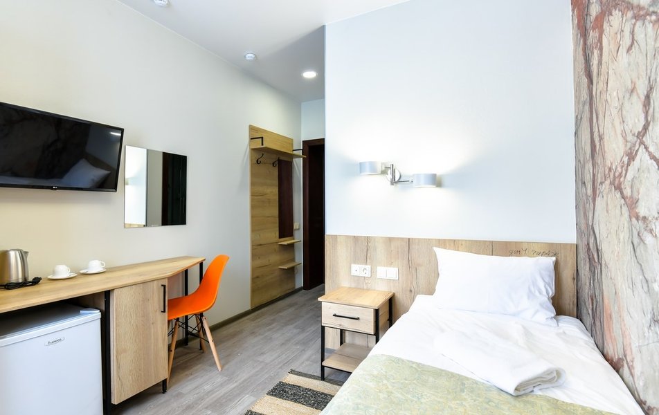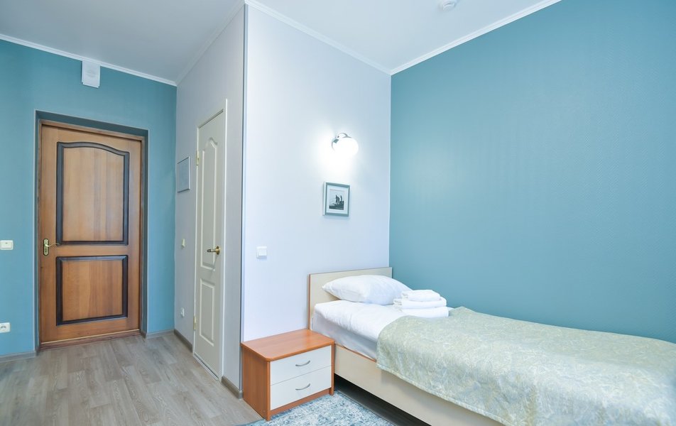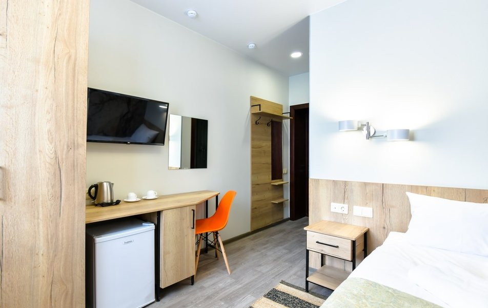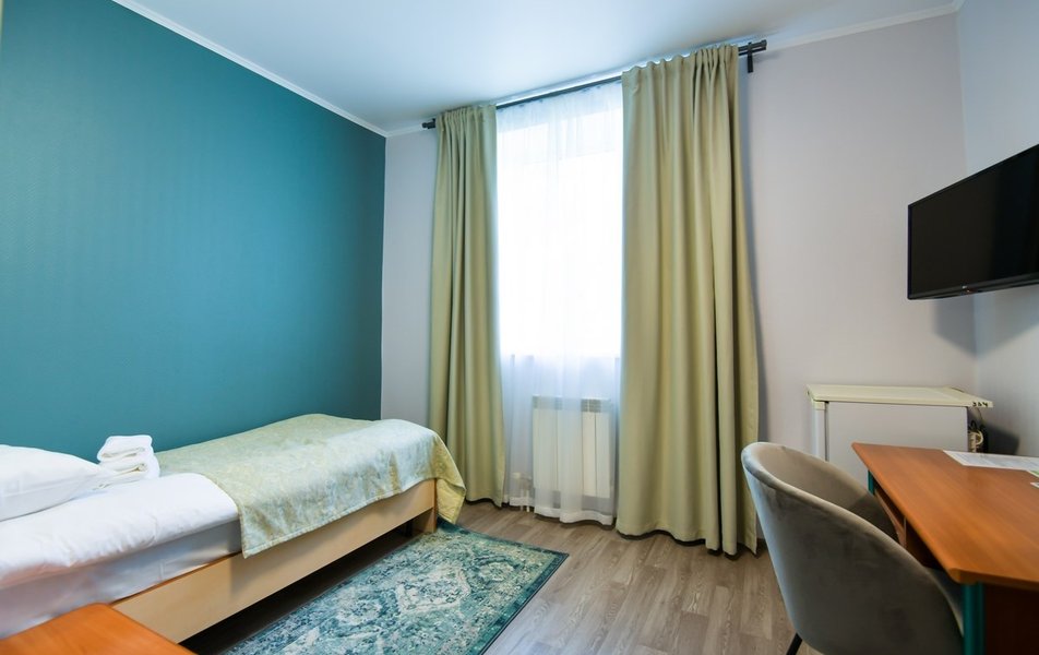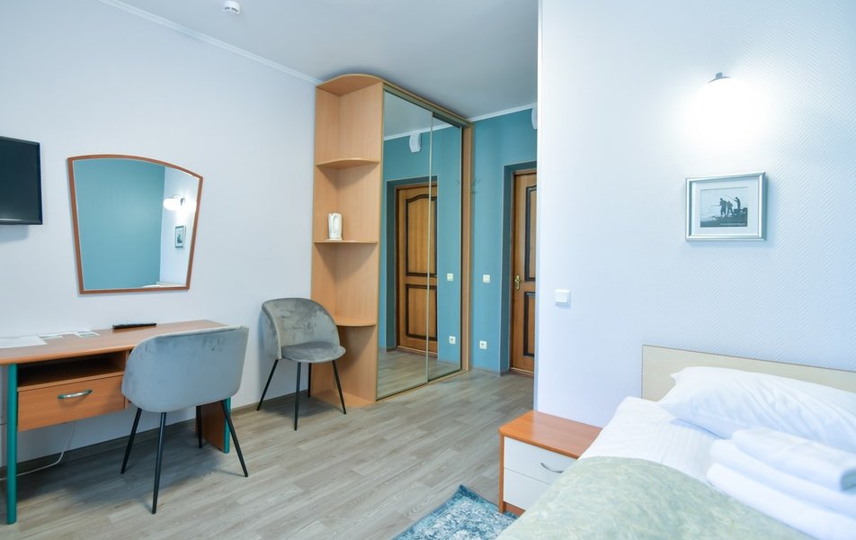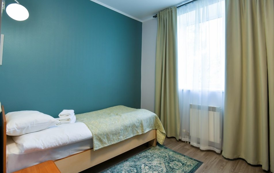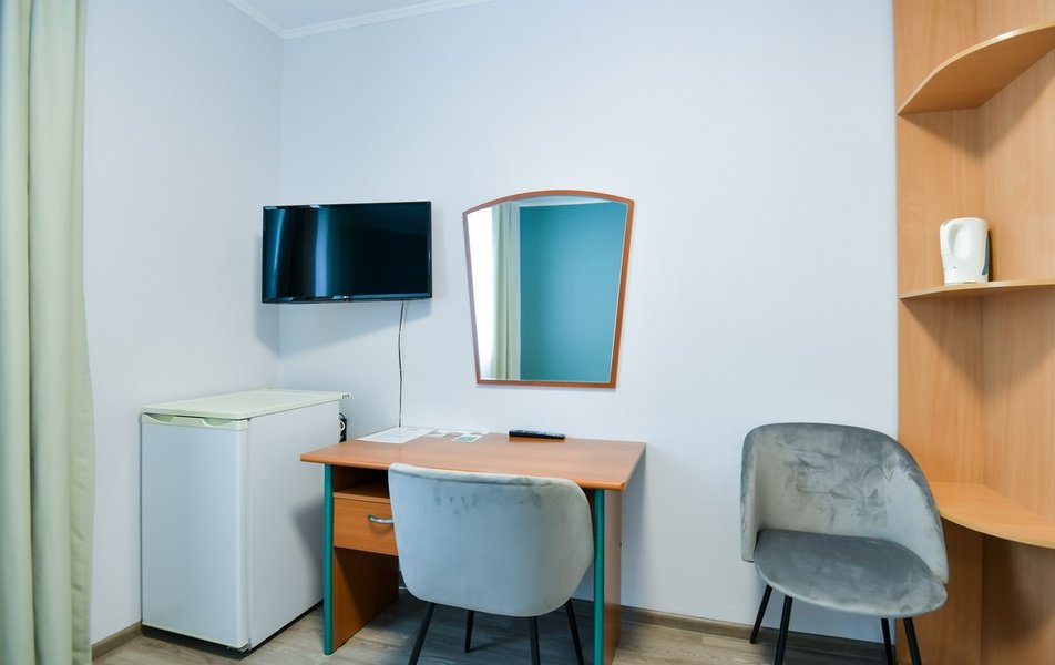 Стандартный 1-местный (корпус 1) Количество комнат: 1-комнатный Тип номера: Стандартный Кол-во основных мест: 1 Корпус: №1 Площадь (кв. м): 15 Мебель: кровать односпальная, прикроватная тумбочка, стол, стул, шкаф Оборудование: телевизор, холодильник, чайный набор посуды, электрочайник Санузел: с душевой кабиной, туалетные принадлежности, фен Сервис: Wi-Fi бесплатно, смена полотенец, смена постельного белья, уборка номера