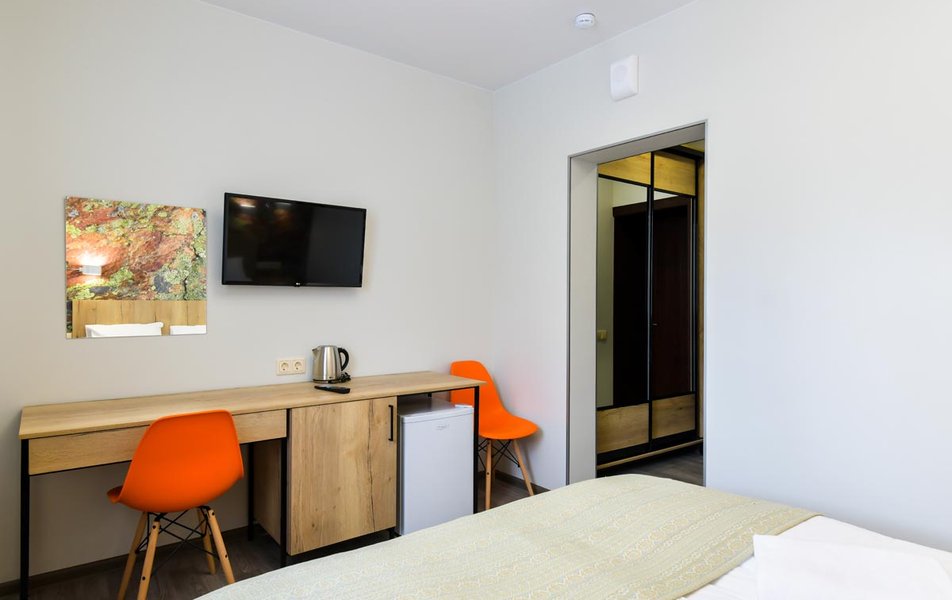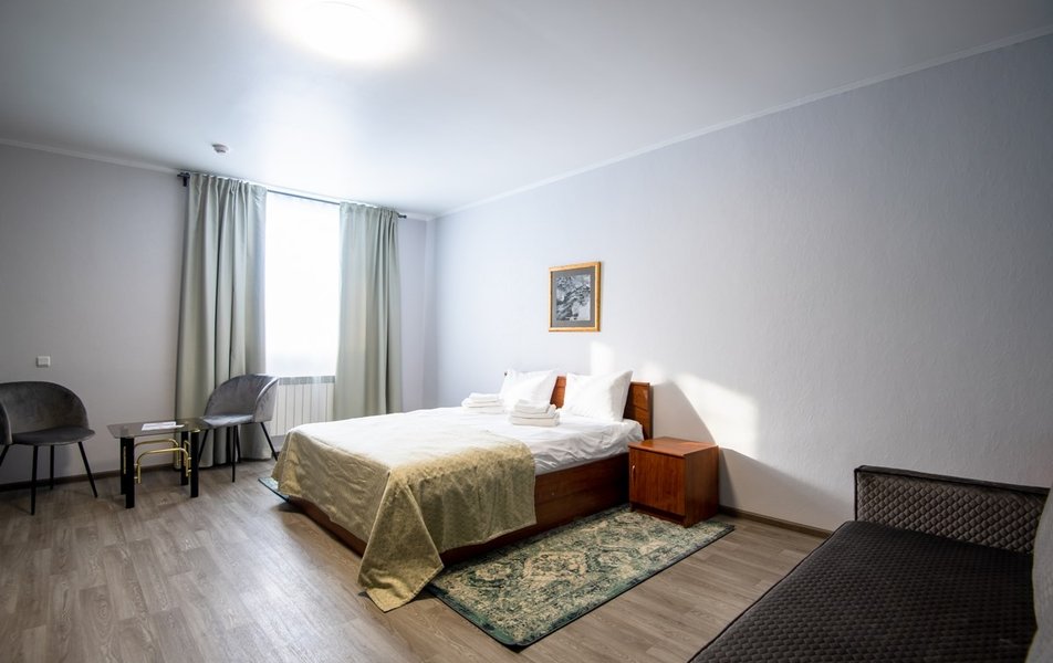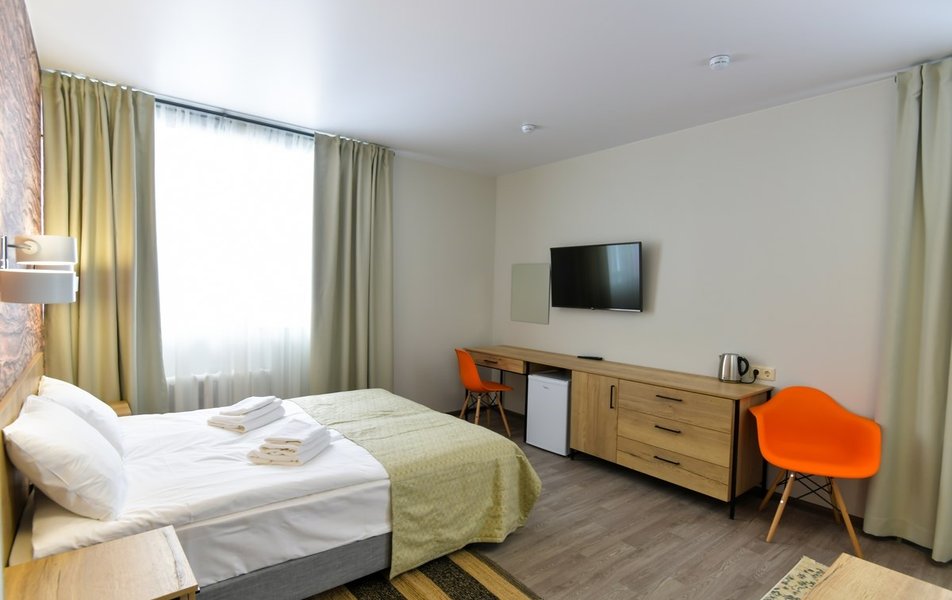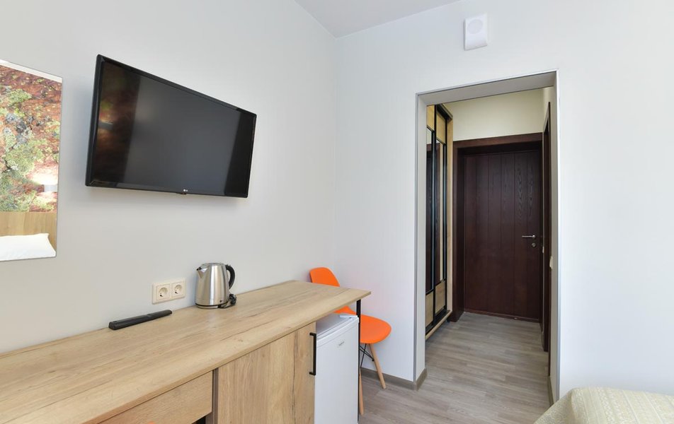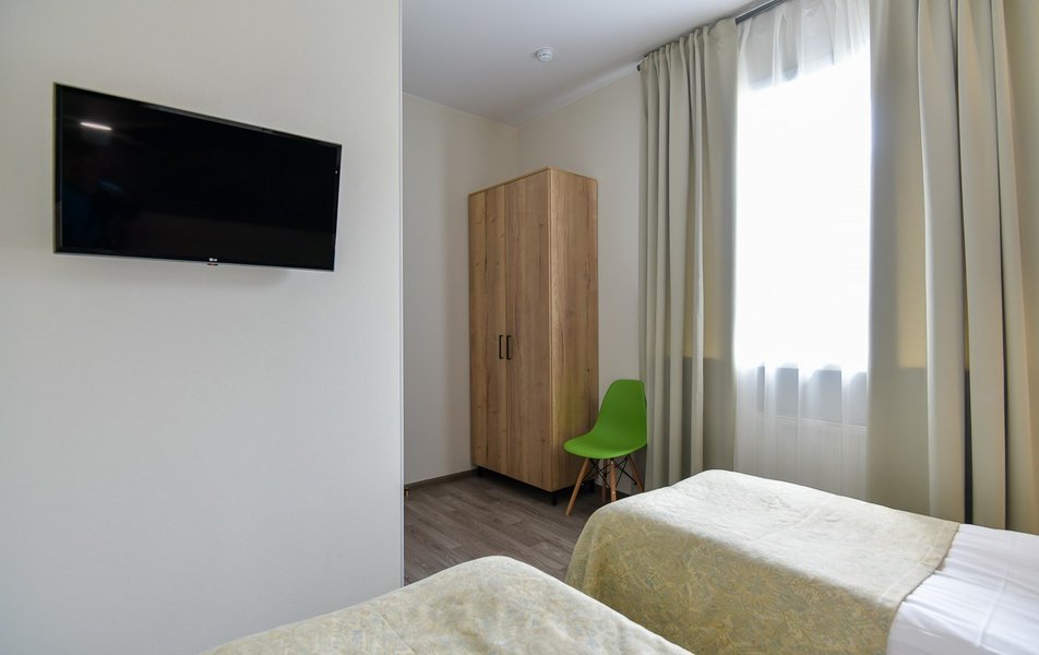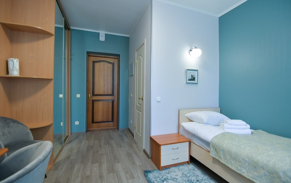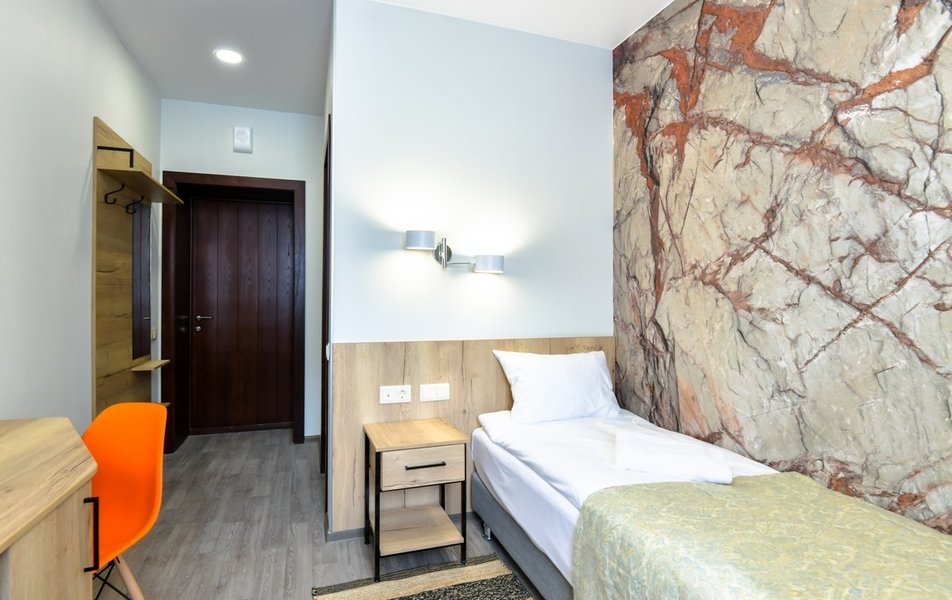 Стандартный 1-местный (корпус 1) Количество комнат: 1-комнатный Тип номера: Стандартный Кол-во основных мест: 1 Корпус: №1 Площадь (кв. м): 15 Мебель: кровать односпальная, прикроватная тумбочка, стол, стул, шкаф Оборудование: телевизор, холодильник, чайный набор посуды, электрочайник Санузел: с душевой кабиной, туалетные принадлежности, фен Сервис: Wi-Fi бесплатно, смена полотенец, смена постельного белья, уборка номера