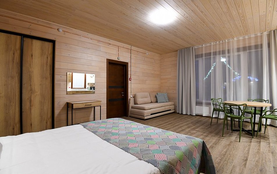 Улучшенный 2-местный Количество комнат: 1-комнатный Тип номера: Улучшенный Кол-во доп. мест: 2 Кол-во основных мест: 2 Площадь (кв. м): 30 Мебель: диван раскладной, кровати односпальные /одна двуспальная кровать, кухонная мебель, прикроватные столики, стол, стулья, шкаф Оборудование: микроволновая печь, набор посуды, плита электрическая, телевизор ЖК, холодильник, электрочайник Санузел: с душевой кабиной Сервис: смена полотенец, смена постельного белья, уборка номера