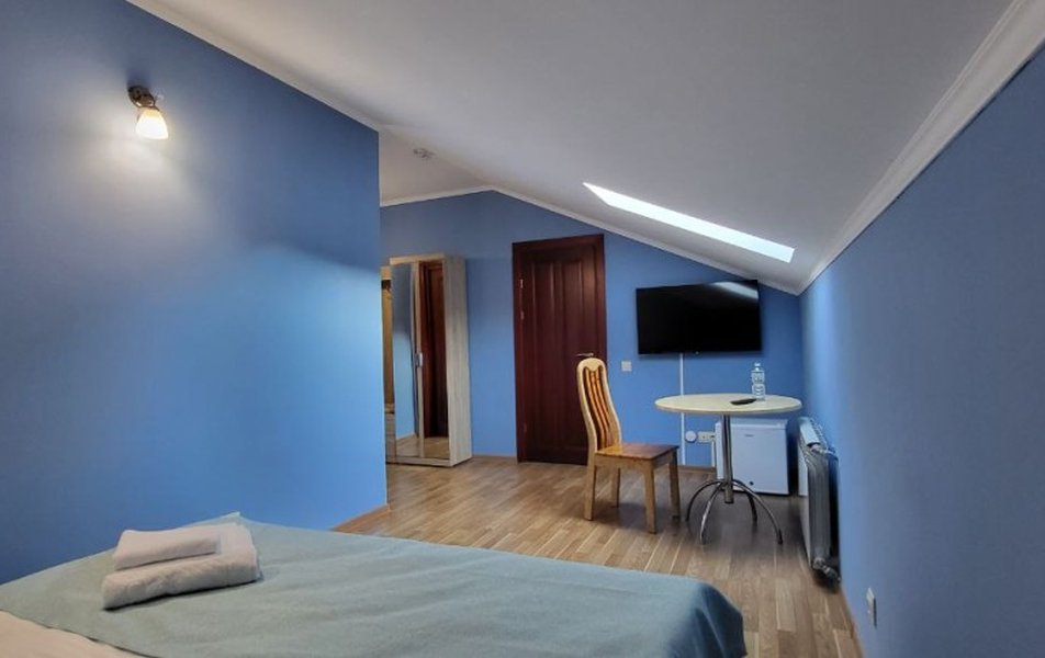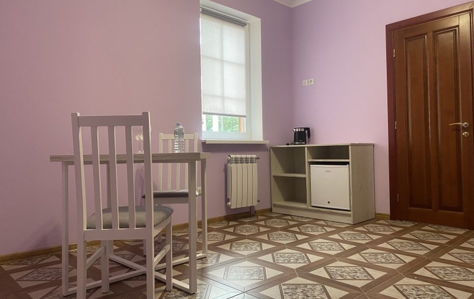 Стандартный 2-местный Мансарда Количество комнат: 1-комнатный Тип номера: Стандартный Вид из номера: на двор Кол-во основных мест: 2 Площадь (кв. м): 20 Этаж: 3 Мебель: зеркало, комод, кровать двуспальная, прикроватные тумбочки, стол, стулья, шкаф Оборудование: мини-холодильник, музыкальный центр, телевизор ЖК, чайный набор посуды, электрочайник Санузел: с ванной/душем, тапочки, туалетные принадлежности, фен, халат Сервис: Wi-Fi бесплатно, смена полотенец, смена постельного белья, уборка номера
