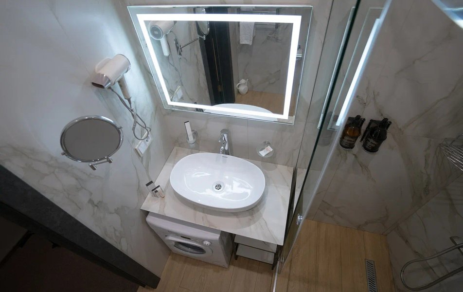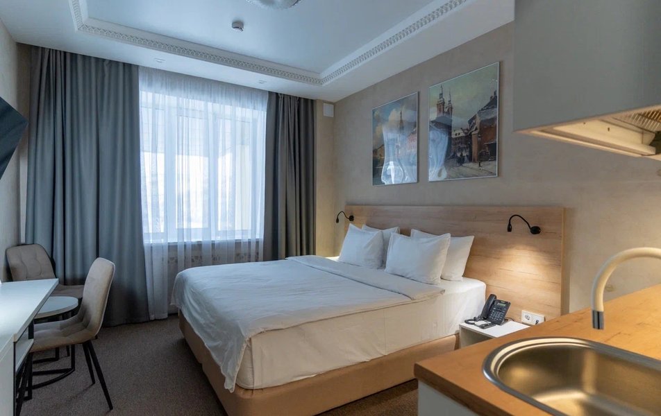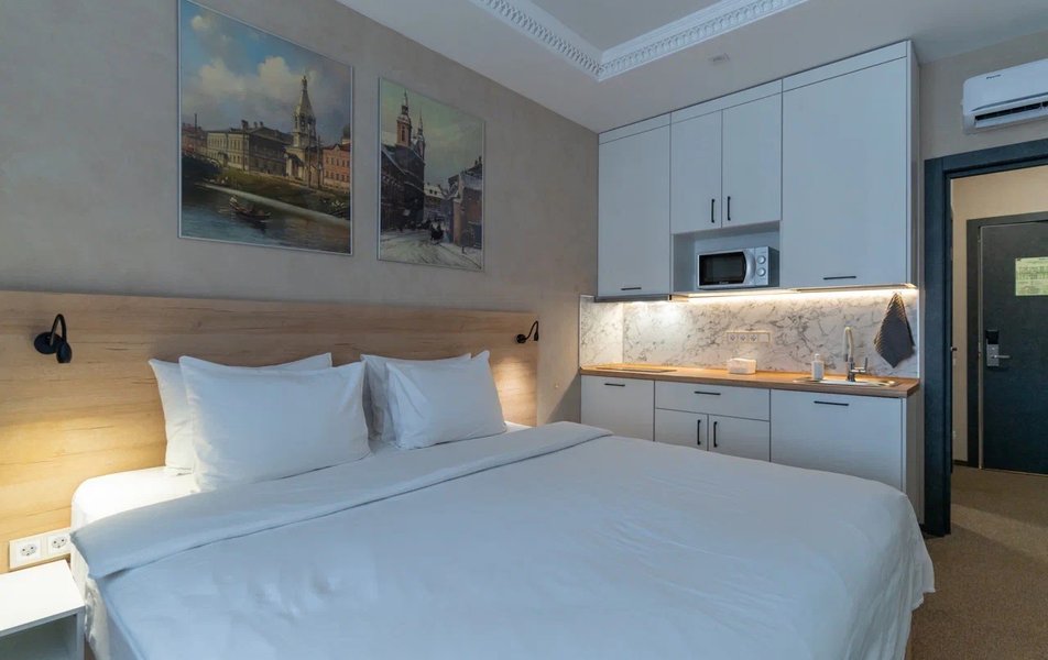 Восторг! Всё было идеально от бронирования по телефону из другого города до выселения. Приветливый персонал на ресепшене (Светлана). Поздравили с юбилеем (в честь дня рождения при бронировании - скидка 15 %️), вручили угощение. Двухкомнатные апартаменты идеальные (как на фото). Все необходимое в номере и даже больше (губка для обуви) есть! Однозначно рекомендую к бронированию!