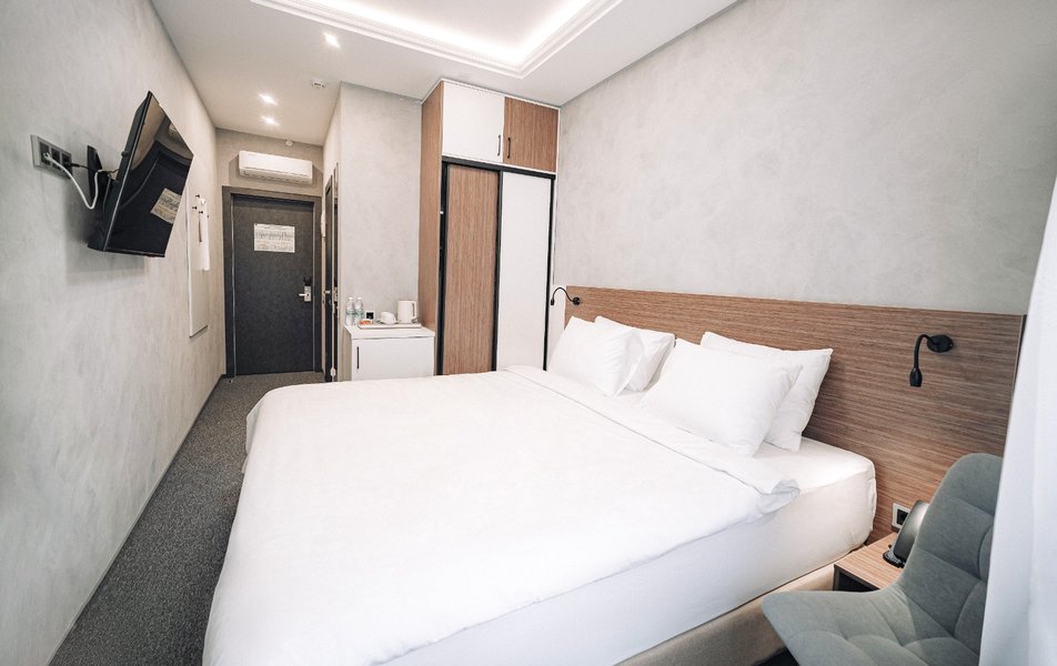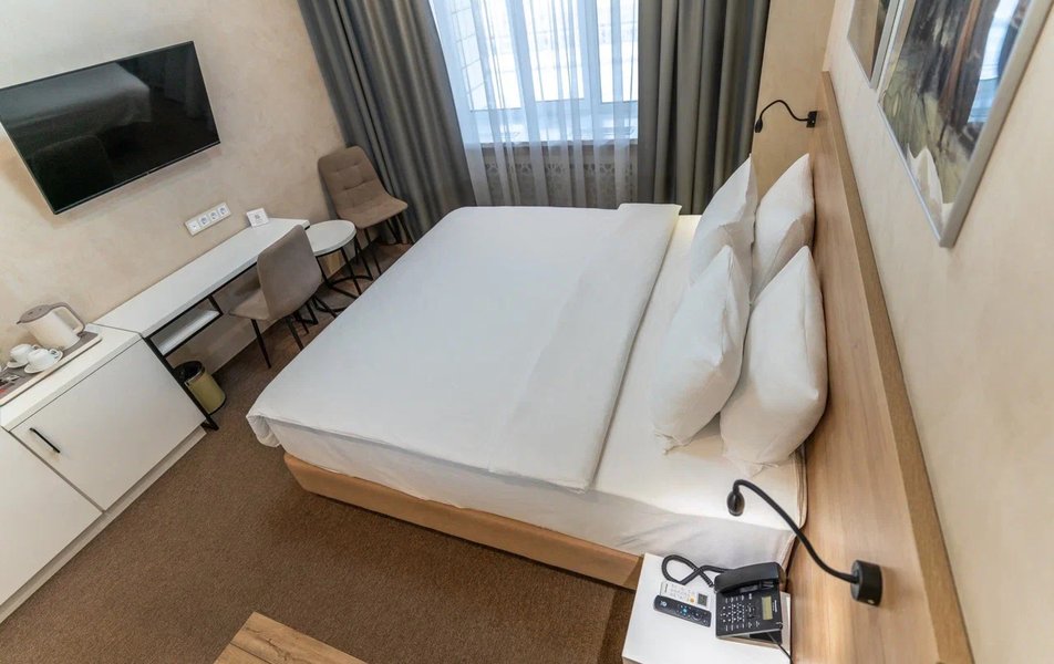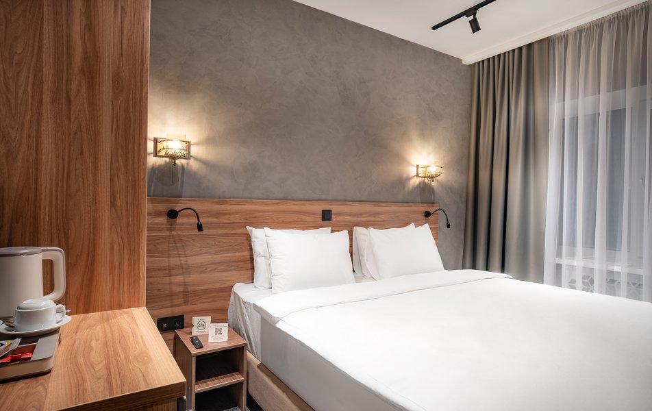 Отличный отель! Комфорт на 5! Местонахождениена 5! Номер чистый! Сейф, фен, щётки, мыльно- рыльное, халаты, тапки,,,, вообщем всё по высшему классу! Дали номер на класс выше за те же деньньги , что и бронировали!