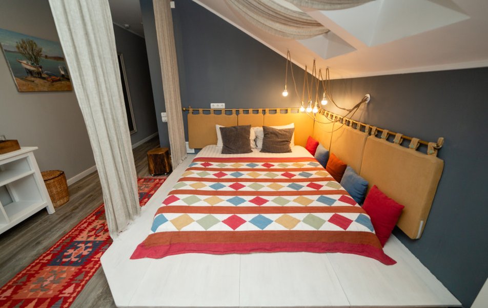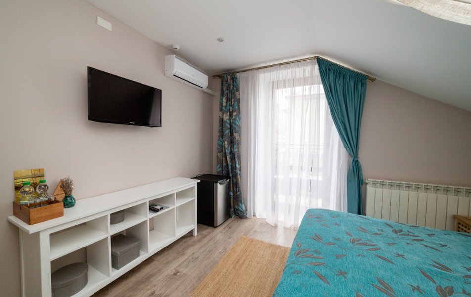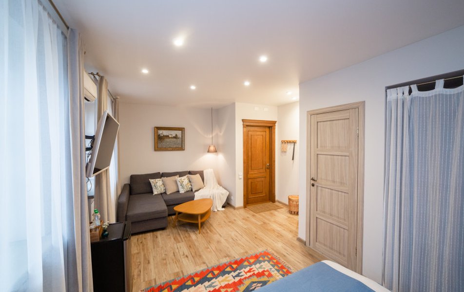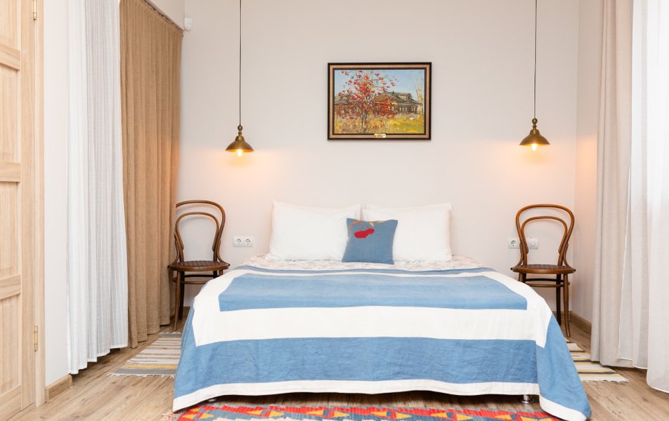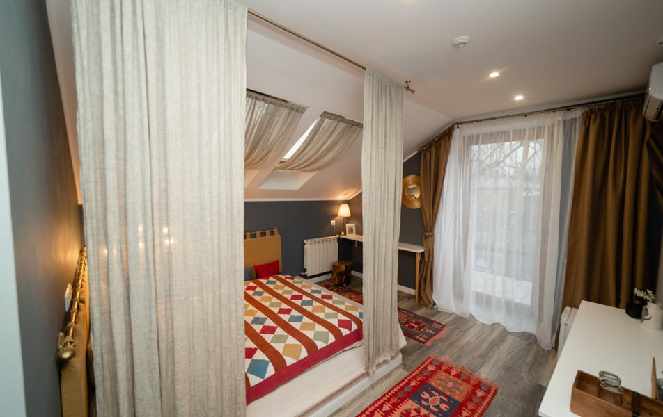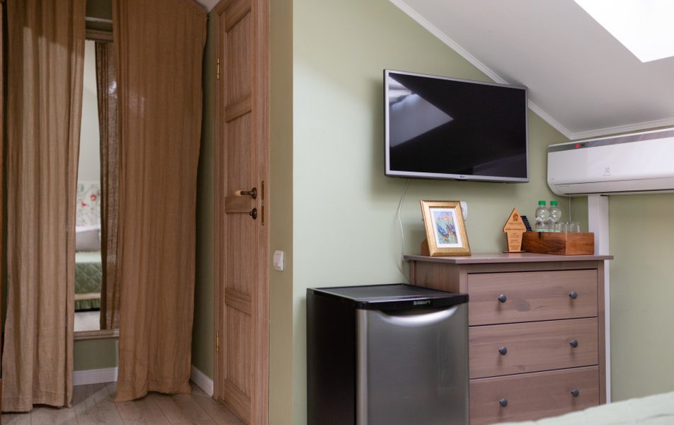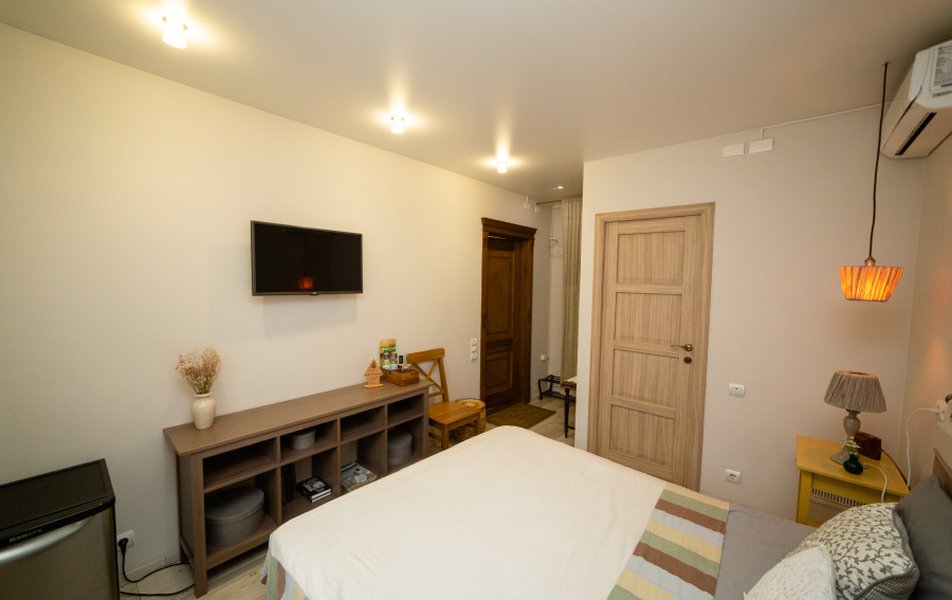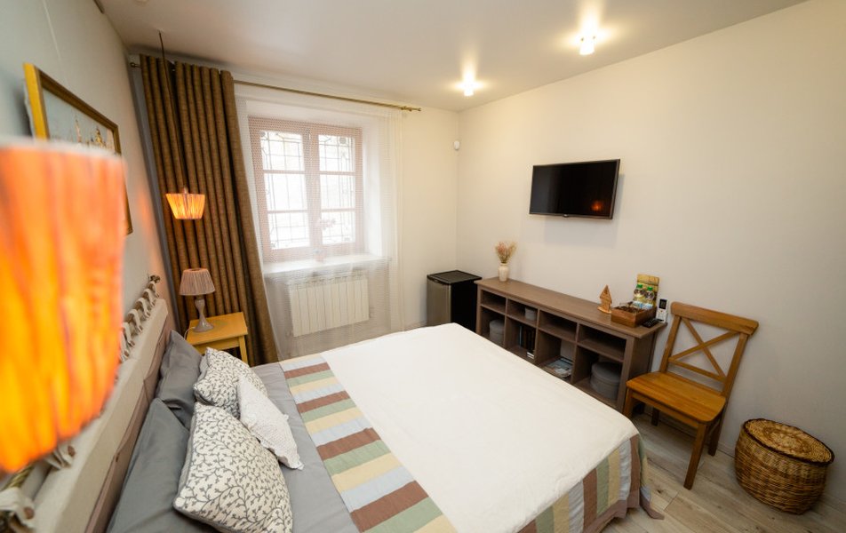 Очень уютный арт - отель. Дизайнерское оформление интерьера . В общем доступе кухня, где можно даже ночью заварить себе чай, полистать книги про живопись. Отдельный плюс : душевные завтраки С домашним йогуртом. Персонал приветливый. МИНУС был один : мансардные грязные окна. Очень грязные.рекомендую помыть. Ведь так приятно смотреть через эти окна на небо. Сосвенно балл снял за это. А так все отлично.