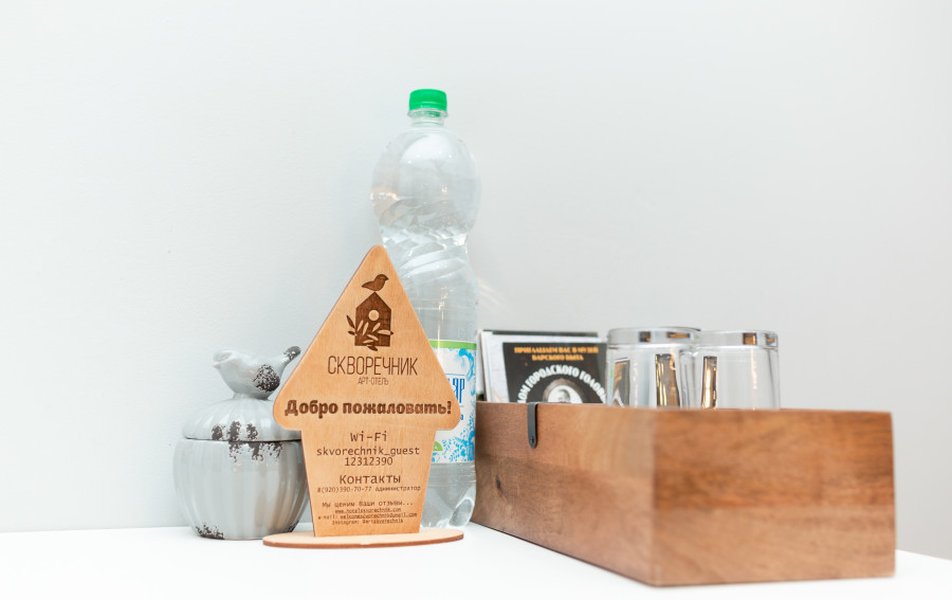 Скворечник,это арт отель,оформлен красивыми картинами и всякими интересными штучками.Местоположение отличное,все рядом и достопримечательности и рестораны.Утром выходишь на крыльцо и вот она,Волга,беседка Островского.за углом музей сыра,хороший магазин от него,рукой подать.Встречают приветливо,дают полезные советы.Есть кухонька,достаточно большая и детский уголок,вполне интересный.Везде очень чисто,номер у нас был на первом этаже,пятый.Если вы чувствительны к тишине,то подумайте,слышны стуки дверью и писк домофона.Нам было уютно и тепло и еще очень чисто.Санузел огромный,можно было станцевать,имелось окно.