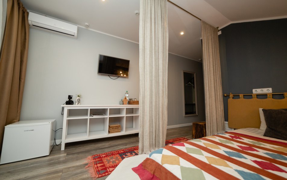 Маленький отель на несколько номеров. Номер удобный с балкончиком, со всем необходимым до мелочей. Персонал очень доброжелательный, огромное им спасибо! Есть кухня, где можно покушать, выпить чай, кофе. Завтраки на выбор по заказу отдельно. Есть маленький дворик, вход только из отеля. По соседству музеи сыра, сладостей, моды Снегурочки. В шаговой доступности рестораны, кафе, торговые ряды, набережная Волги. Мы очень довольны своим отдыхом в этом отеле.