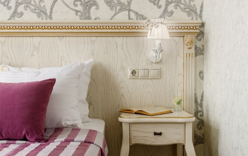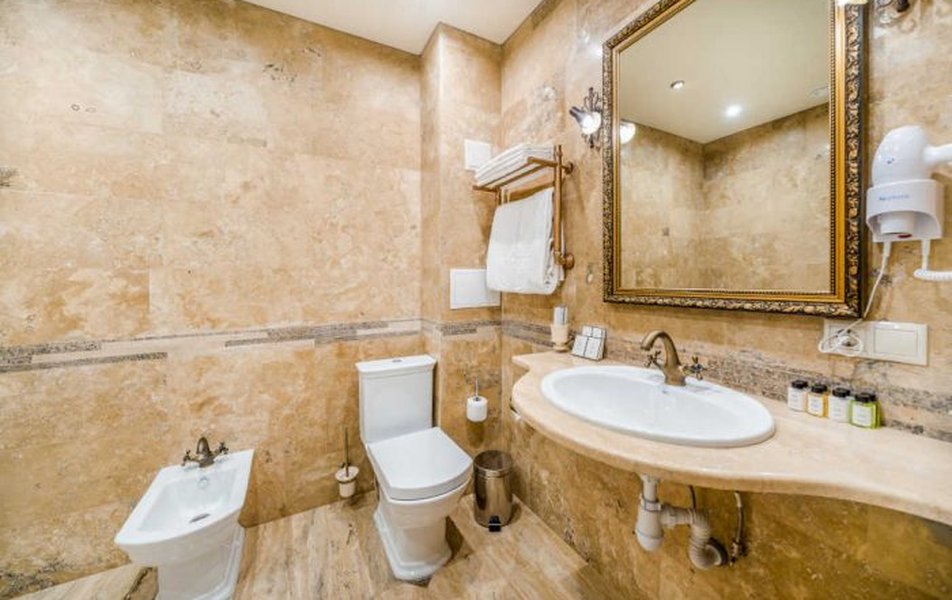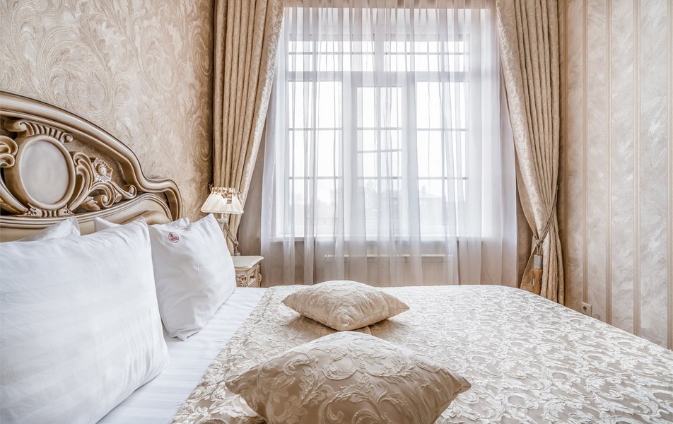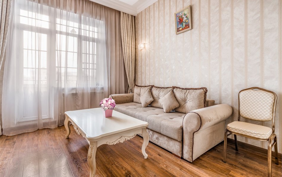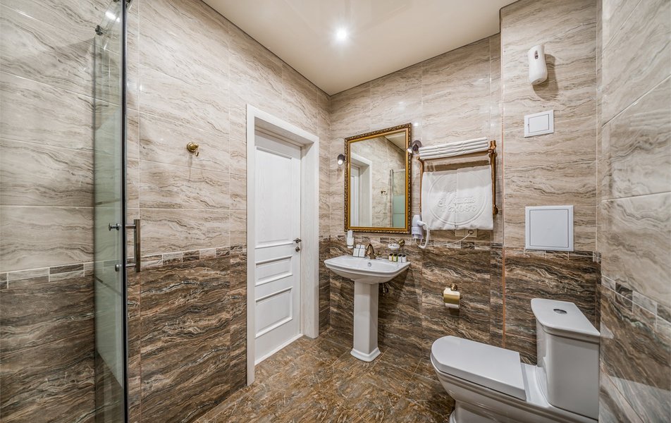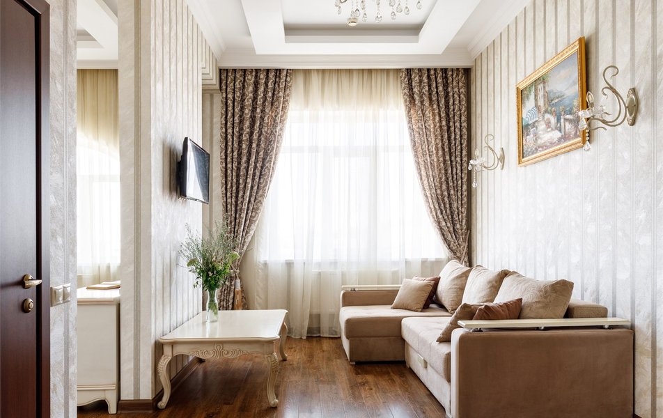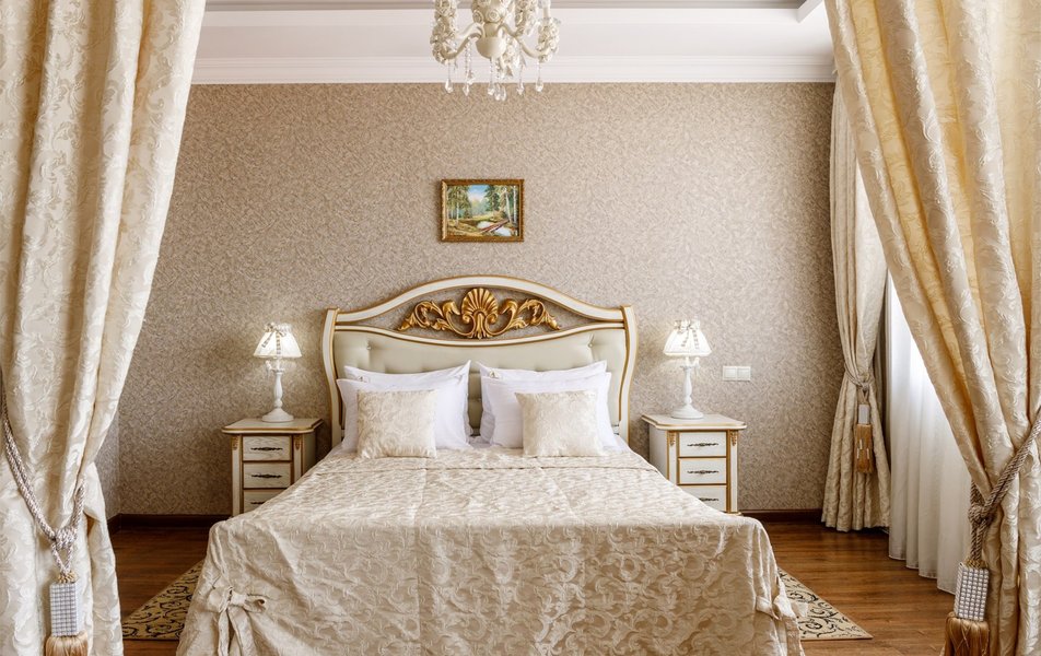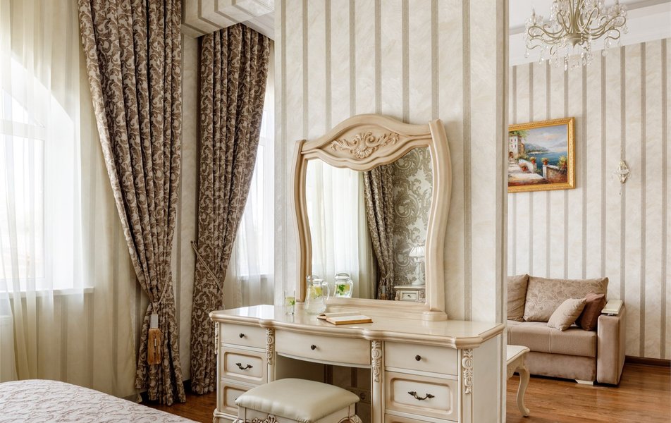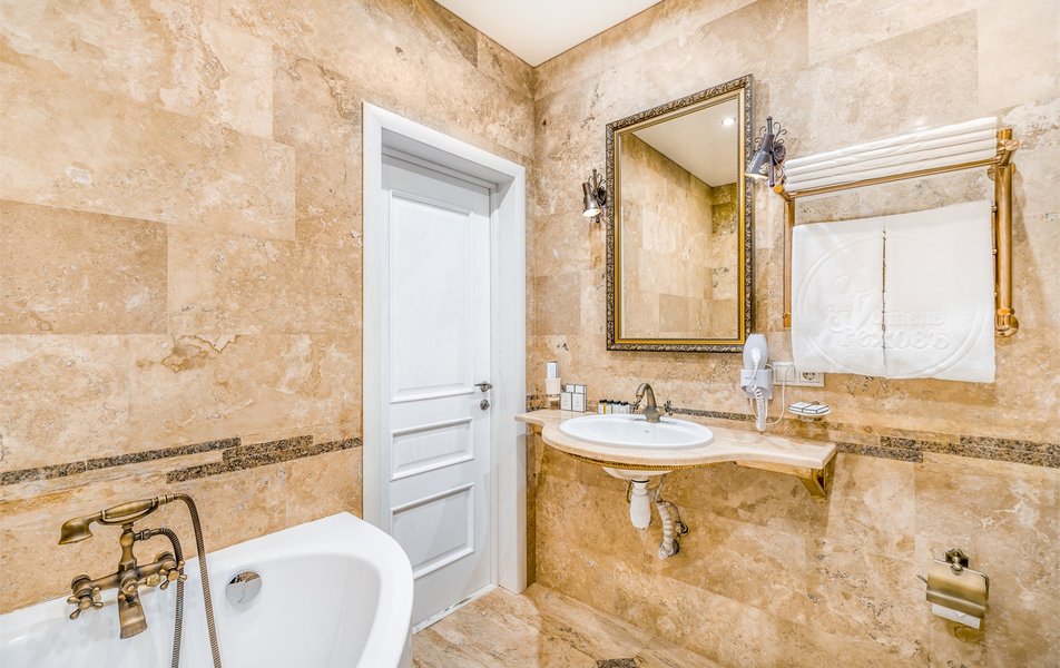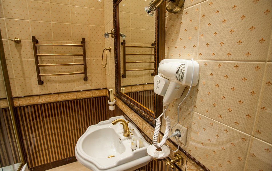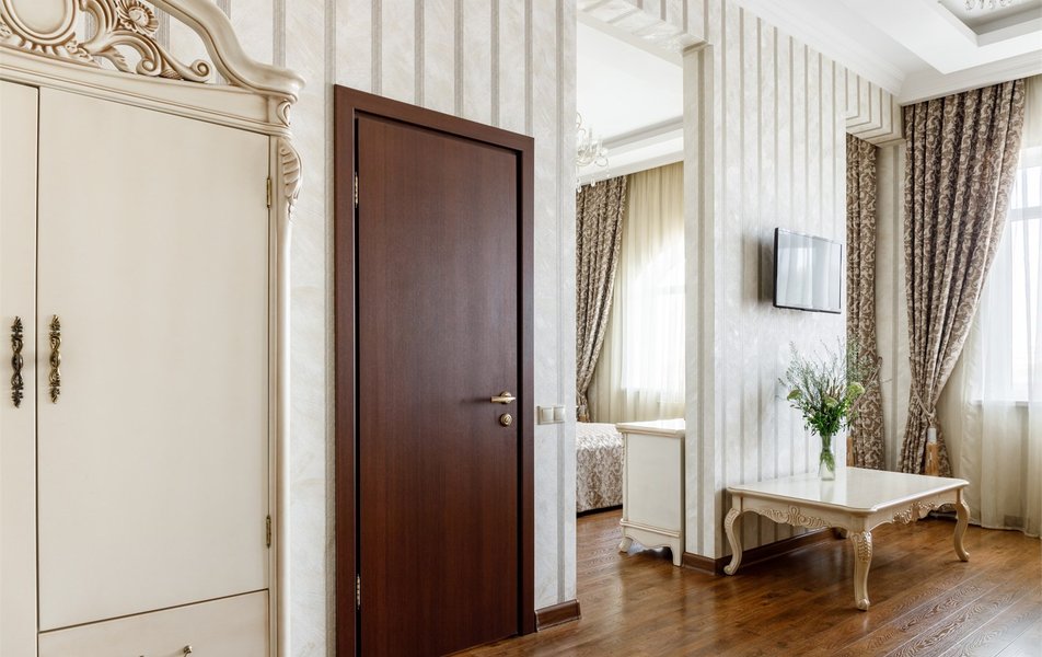 Люкс 2-местный 2-комнатный Количество комнат: 2-комнатный Тип номера: Люкс Дополнительное место: диван Кол-во доп. мест: 1 Кол-во основных мест: 2 Площадь (кв. м): 41 Мебель: вешалка, зеркало, кресло, кровать двуспальная, набор мягкой мебели, прикроватные тумбочки, стол, столик журнальный, стулья, тумба, шкаф-купе Оборудование: кондиционер: система климат-контроля, мини-холодильник, сейф, телевизор Санузел: биде, с ванной, тапочки, туалетные принадлежности, фен, халат Сервис: Wi-Fi бесплатно, смена полотенец, смена постельного белья, уборка номера