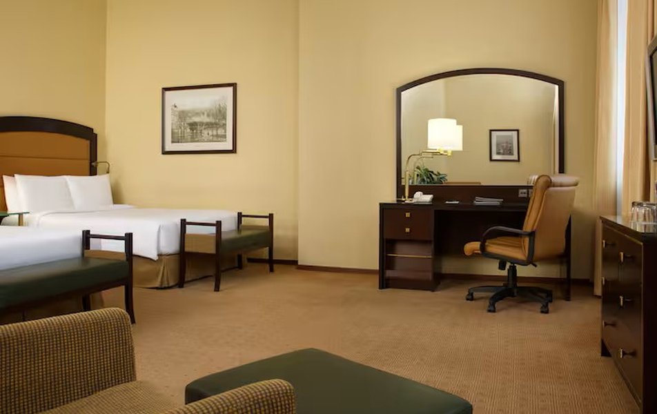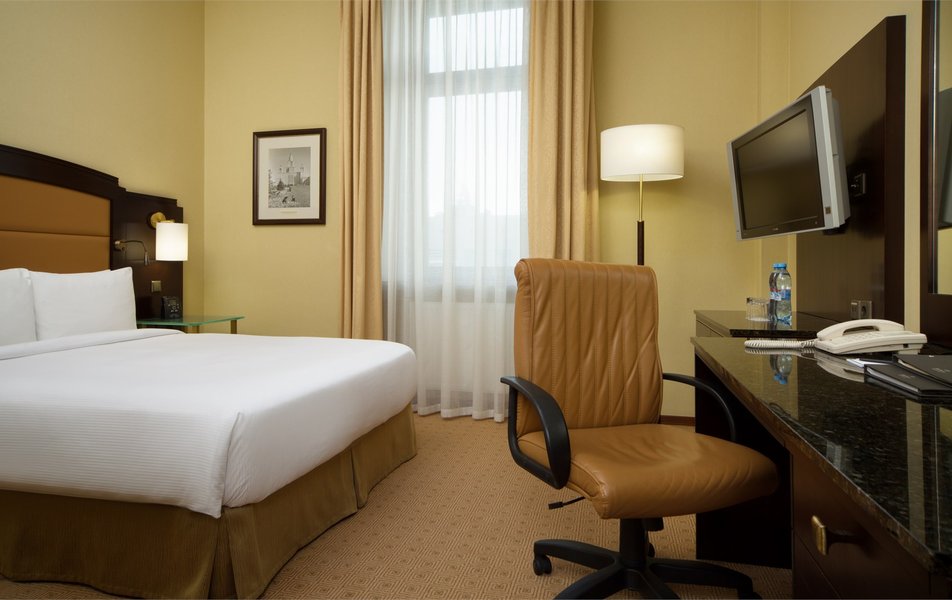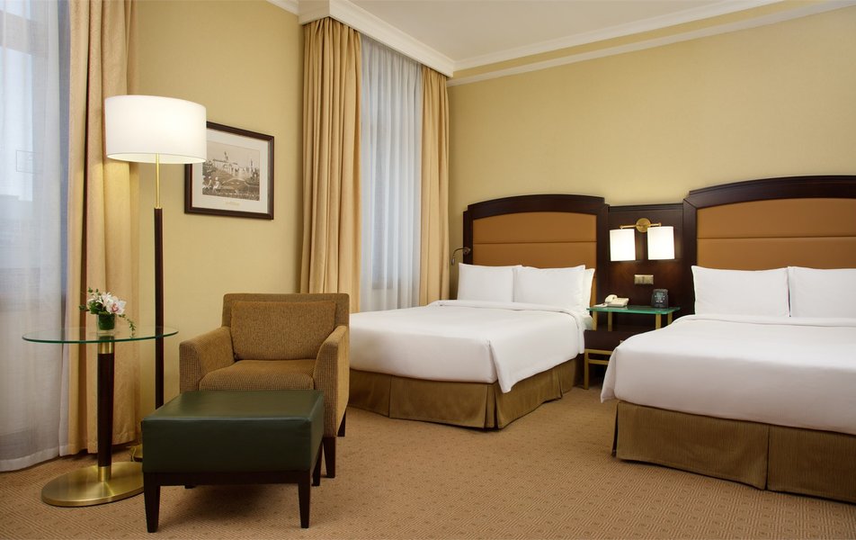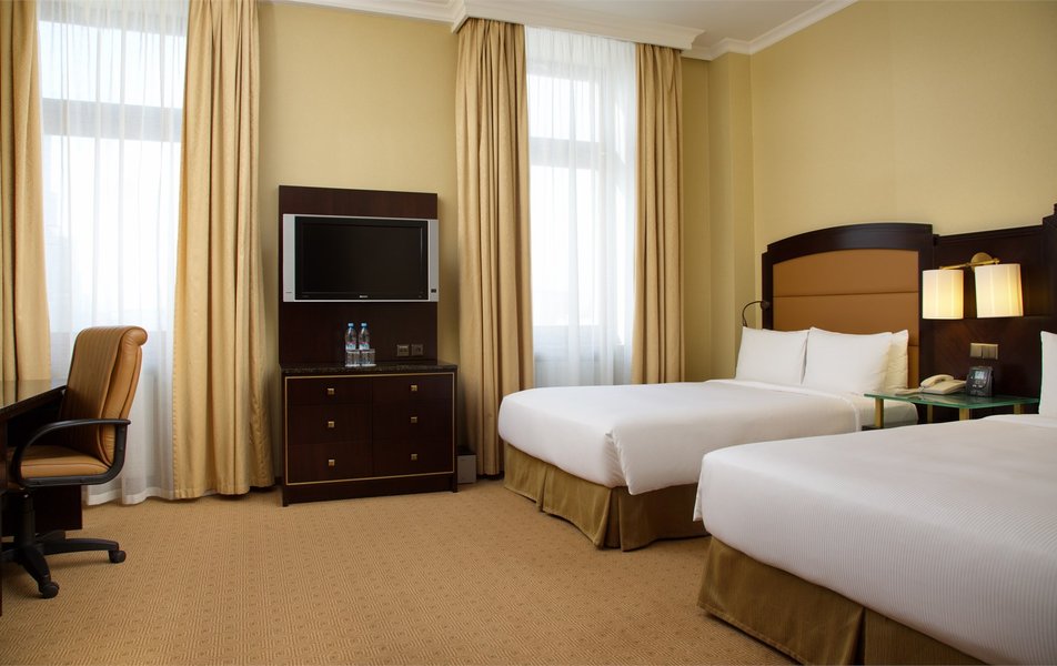 От хилтона только цена осталась… Приезжаешь в 12 ночи, никто не встречает у входа. Тянешь чемоданы, коляску, открываешь тяжеленную дверь, дальше видишь охранник на диване залипает в телефоне, на тебя особо внимание не обращает. Дальше подхоходишь к ресепшену- никого, ок. Звоночек, подходит девушка, оформляется. Минут 15-20. Заселяют в номер, номера уже под уставшие, плинтуса оттесанные, ковролин со следами ремонта и тд. В ванной в кабинке плесень в уголках. Ну да ладно, спать хотелось так что закрыли на все глаза. Включаем кондей, ложимся спать. Просыпаемся через часа 3 с дикой головной болью, оказывается кондей не работает, скажу больше он выдает тепло вместо холода. Открываем окна, а они выходят на железную дорогу…. Короче поспать - главная задача отеля не выполнена. Ах да, забыл, заказываем еду в номер, через час перезванивают и говорят : мы только увидели ваш заказ, нам его готовить? Или отменяем? Я никогда не верил, что с уходом реальных брендов мы так быстро упадем на дно. За 20 тыс руб не удалось даже тупо поспать в комфорте.