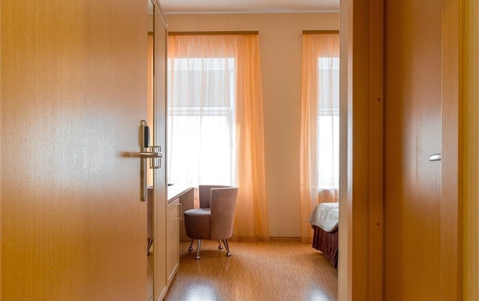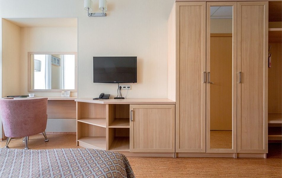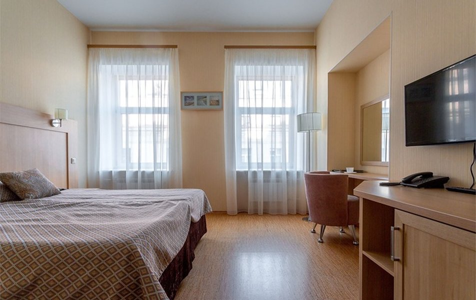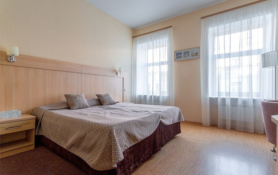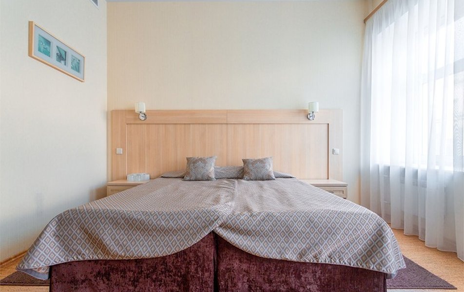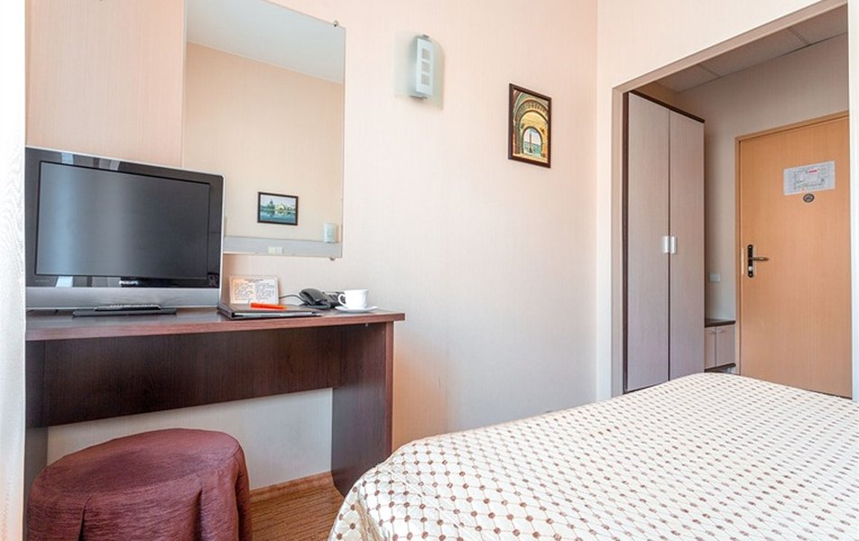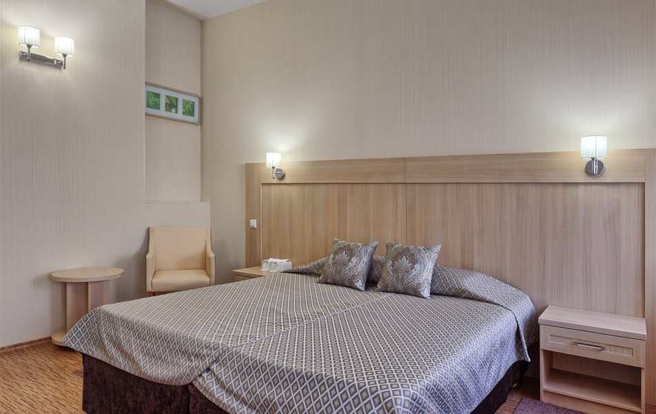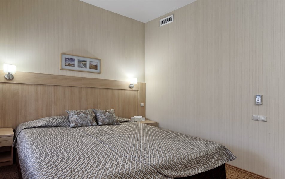 Стандарт Классический 2-местный Количество комнат: 1-комнатный Тип номера: Стандартный Вид из номера: на двор Кол-во основных мест: 2 Площадь (кв. м): 10 Мебель: вешалка, зеркало, кровать двуспальная, прикроватные тумбочки, стол, стулья, шкаф Оборудование: кондиционер, телевизор, телефон Санузел: с душем, туалетные принадлежности, фен Сервис: Wi-Fi бесплатно, карточная система замков, смена полотенец, смена постельного белья, уборка номера, услуги внутренней телефонной связи