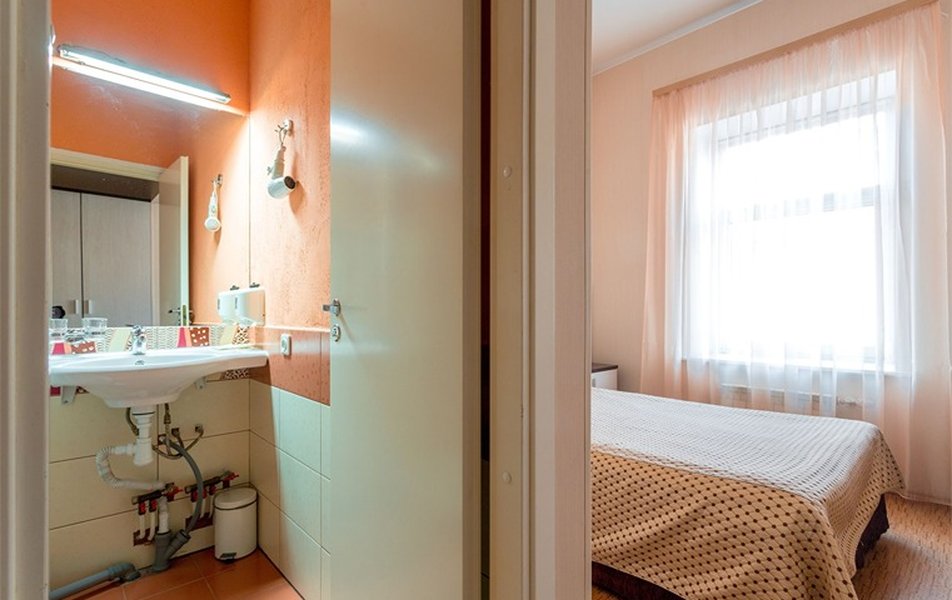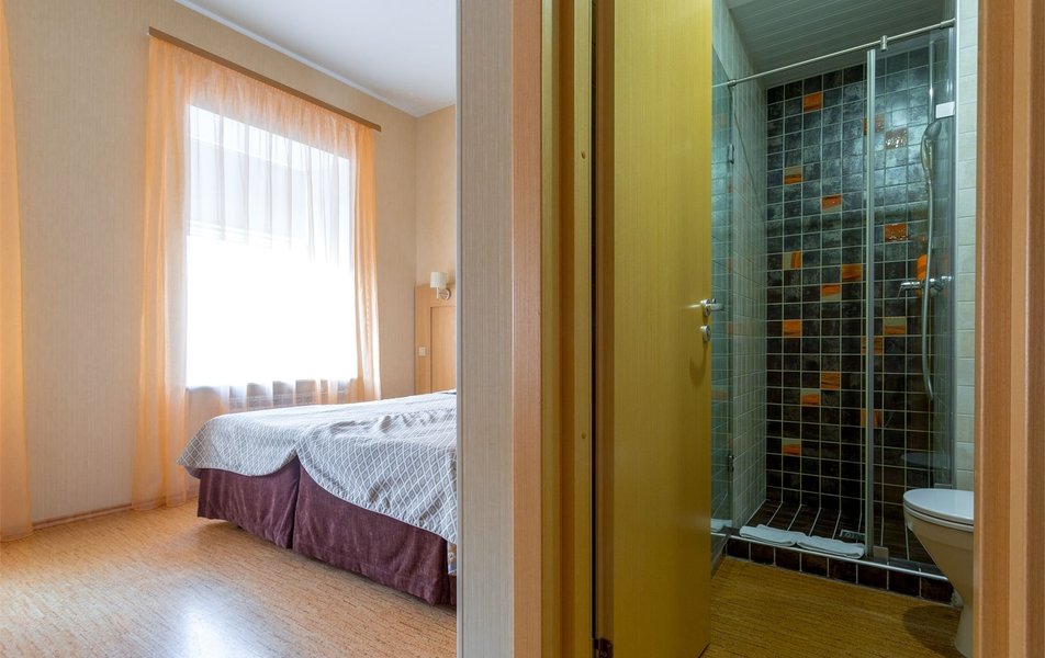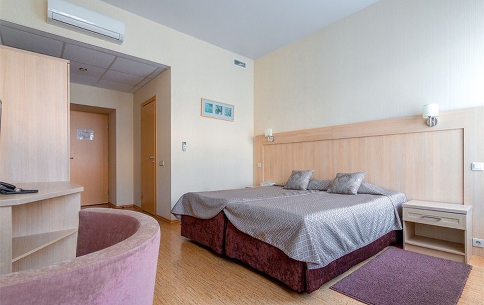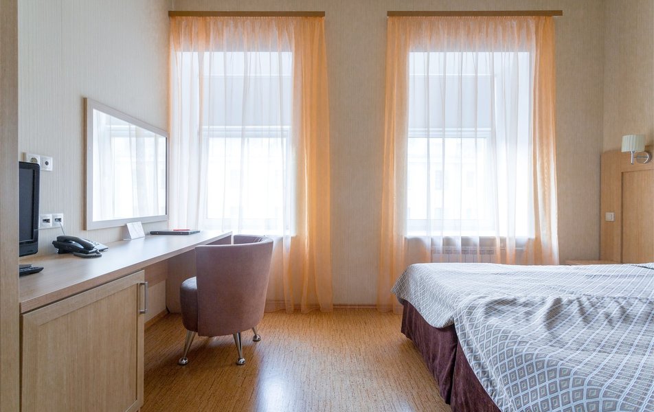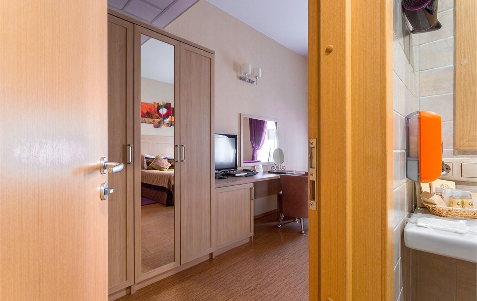 Комфорт 2-местный Количество комнат: 1-комнатный Тип номера: Комфорт Вид из номера: на город Кол-во основных мест: 2 Площадь (кв. м): 14 Мебель: вешалка, зеркало, кровати односпальные /одна двуспальная кровать, прикроватные тумбочки, стол, стулья, шкаф Оборудование: кондиционер, телевизор, телефон Санузел: с душем, туалетные принадлежности, фен Сервис: Wi-Fi бесплатно, карточная система замков, смена полотенец, смена постельного белья, уборка номера, услуги внутренней телефонной связи